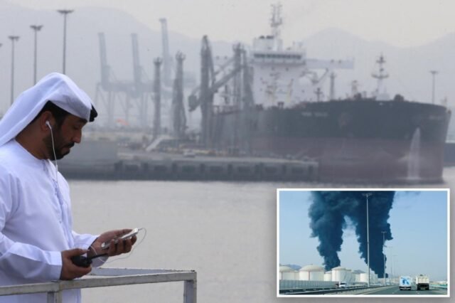 Un hombre emiratí se encuentra frente a una terminal petrolera en los Emiratos Árabes Unidos. AFP vía Getty Images