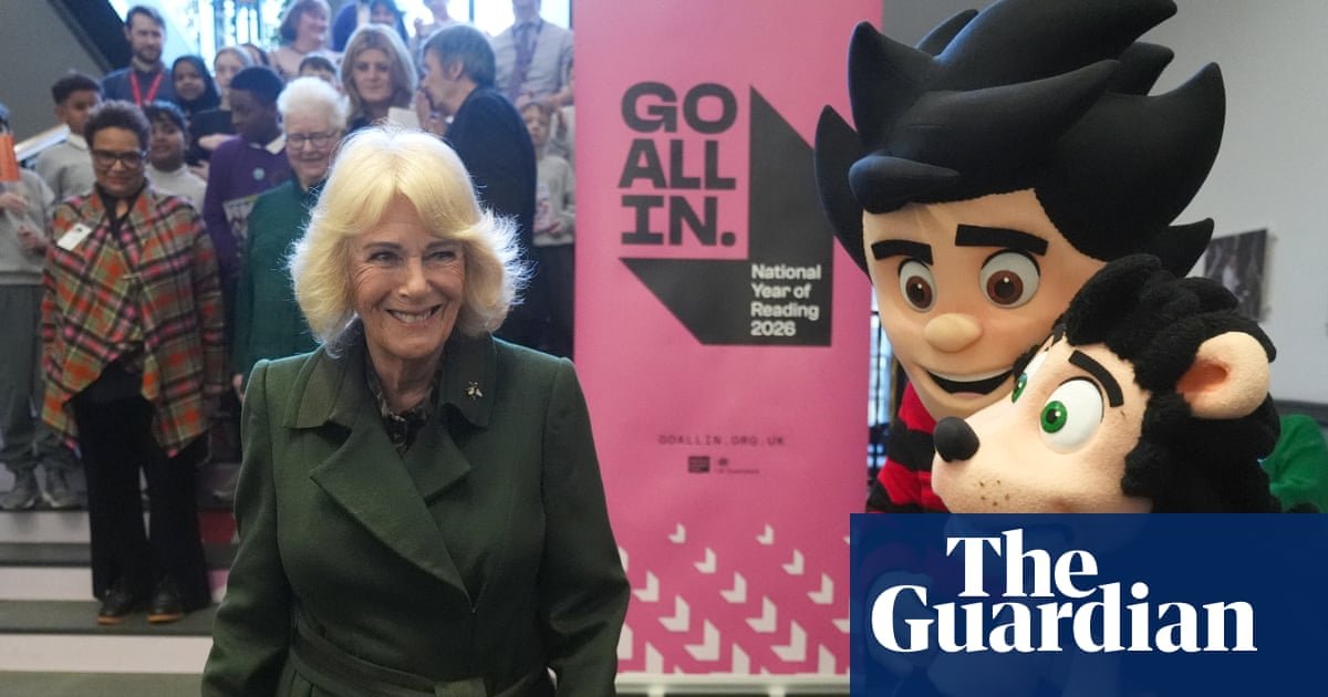 qLa reina Camilla se ha topado con muchos personajes desagradables durante su carrera real, pero su encuentro esta semana con dos celebridades reprobadas fue al menos por una buena causa. La Reina apareció en el Beano junto a su famoso chico malo Dennis the Menace y su perro Gnasher, como parte de una campaña para promover la lectura.