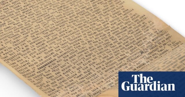 El pergamino se ofrecerá en una subasta en vivo en Christie’s en Nueva York el 12 de marzo como parte de una serie de cuatro ventas extraídas del Colección Jim Irsay. Junto a él estará el pergamino original mecanografiado de The Dharma Bums de Kerouac, cuyo precio se estima entre £ 218.000 y £ 364.000 (entre 300.000 y 500.000 dólares).