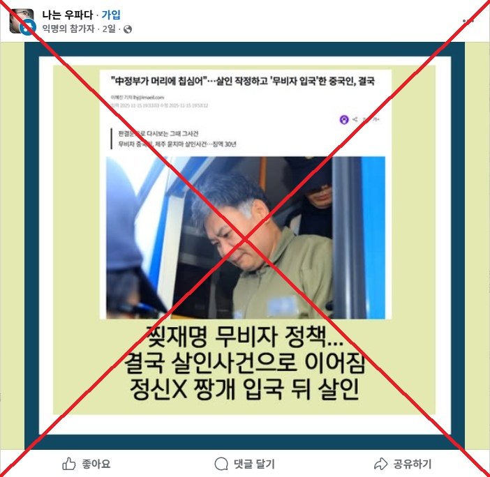Después de que Corea del Sur comenzara a recibir a grupos de turistas chinos bajo una política de exención temporal de visa, una fotografía de hace casi una década resurgió en publicaciones que afirmaban falsamente que mostraba a un turista admitido en el país bajo el programa que luego mató a un residente local. Las publicaciones acusan al presidente Lee Jae Myung de ser responsable del asesinato, pero el crimen en realidad tuvo lugar nueve años antes de que Lee fuera elegido presidente.