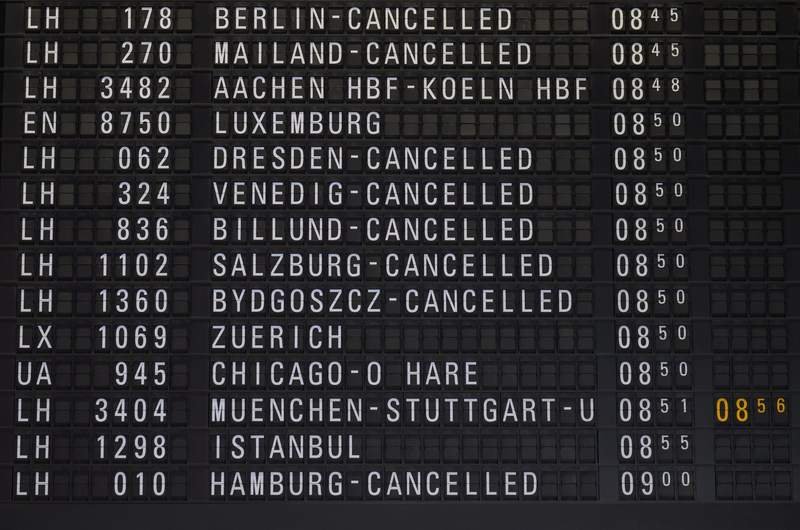 Más de 1.100 despegues y aterrizajes en Frankfurt, el principal centro de Lufthansa y el aeropuerto más grande de Alemania, fueron cancelados el lunes y martes, y 710 vuelos fueron cancelados en Munich.
