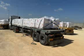 Camiones que transportan ayuda y combustible a la Franja de Gaza a través de COGAT y la Armada israelí, 26 de mayo de 2024 (Crédito de la foto: Portavoz de las FDI