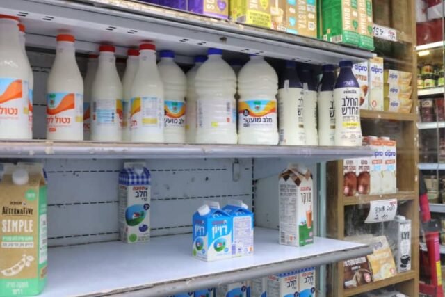 Israel se enfrenta a una escasez de suministro de leche en las tiendas debido a que los productores de leche detienen las entregas de leche. 2 de febrero de 2026 (crédito de la foto: MARC ISRAEL SELLEM)