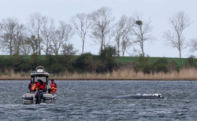 La ballena, apodada Timmy por los medios alemanes, nadó brevemente libremente el lunes después de permanecer atrapada durante tres semanas en un lugar, pero se detuvo después de unas dos horas cerca de la entrada de la bahía de Wismar, que desemboca en el mar Báltico.