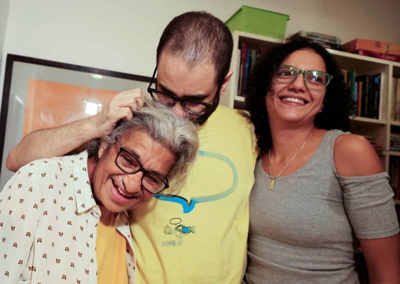 En una declaración más larga, su familia dijo que voló desde El Cairo a Gran Bretaña el viernes después de que las autoridades egipcias levantaran su prohibición de viajar el 20 de diciembre. La declaración decía que pronto se reuniría con su hijo Khaled, de 14 años, que vive en Brighton, en el sur de Inglaterra, con su madre.
