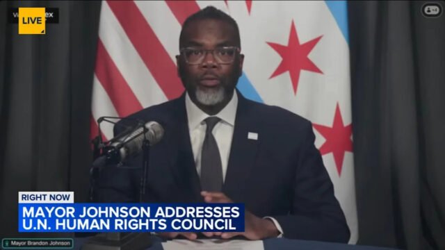 El alcalde de Chicago, Brandon Johnson, habló ante los líderes de las Naciones Unidas en Ginebra, Suiza.