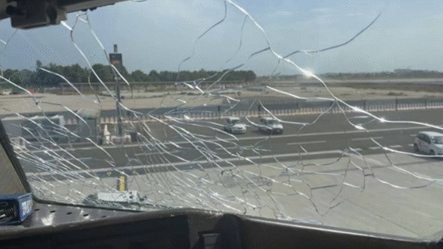 “Mientras comenzamos nuestro turno a la izquierda, noté una luz de rayo en mi parabrisas seguido de una grieta repentina”, dijo el primer oficial a los investigadores, según el informe.