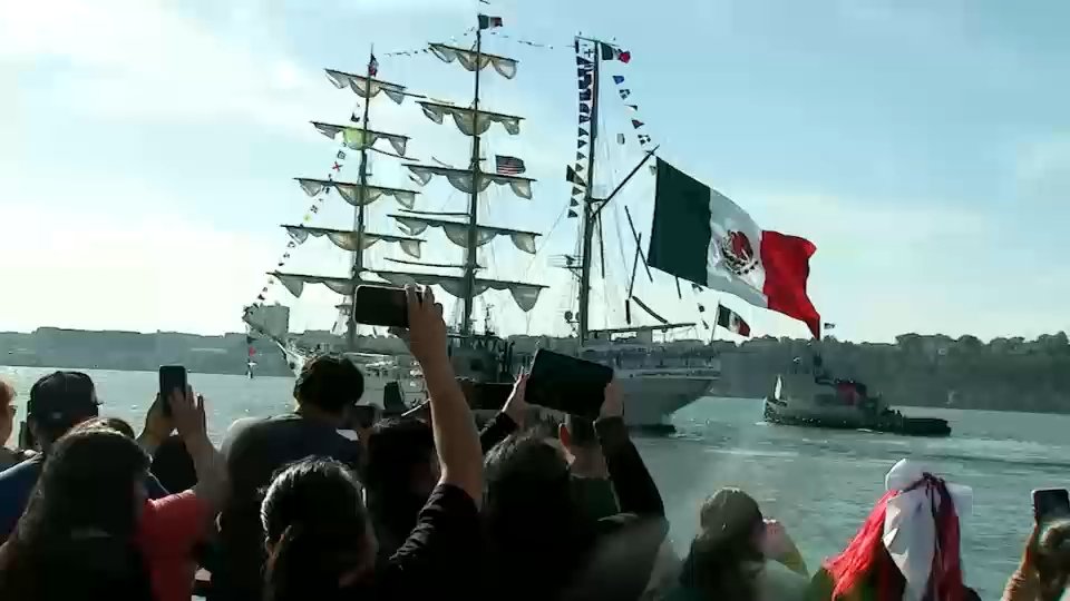 El sábado, el barco comenzó su regreso a casa en México. Cientos de personas dieron la bienvenida a la tripulación de Cuauhtemoc antes de la partida del barco del muelle 86 cerca del intrépido.