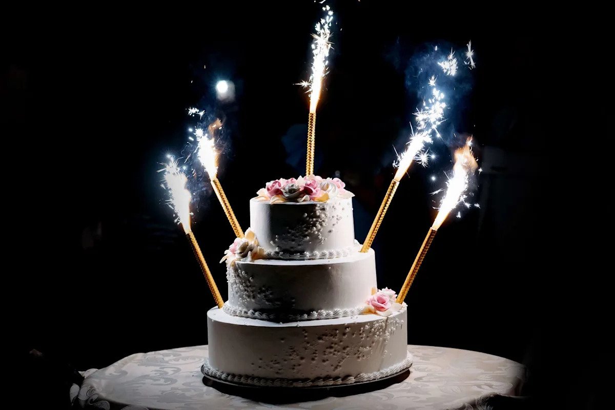 Imagen de bengalas en un pastel de bodas