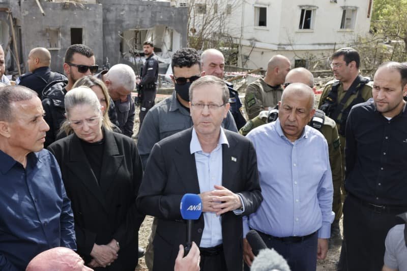 El presidente Isaac Herzog visitó el viernes el lugar del impacto de un ataque con misiles en la aldea de Zarzir.