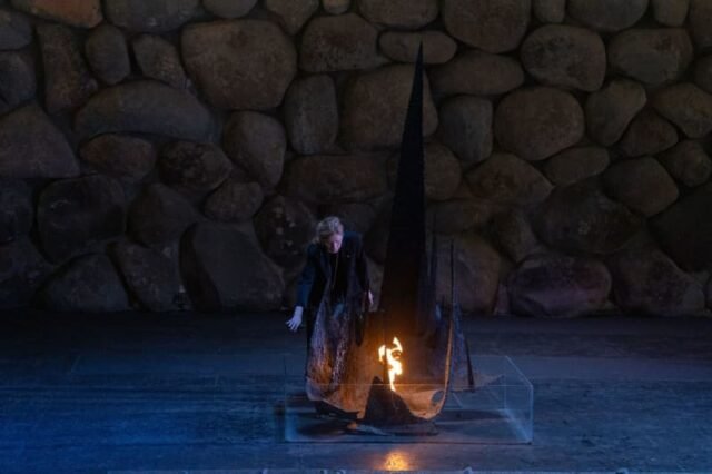 La ministra alemana de Educación, Familia, Tercera Edad, Mujeres y Juventud, Karin Prien, deposita una ofrenda floral frente a la Llama Eterna en el Salón del Recuerdo del Museo Conmemorativo del Holocausto Yad Vashem. Prien se encuentra en una visita oficial a Israel. Ilia Efimovitch/dpa