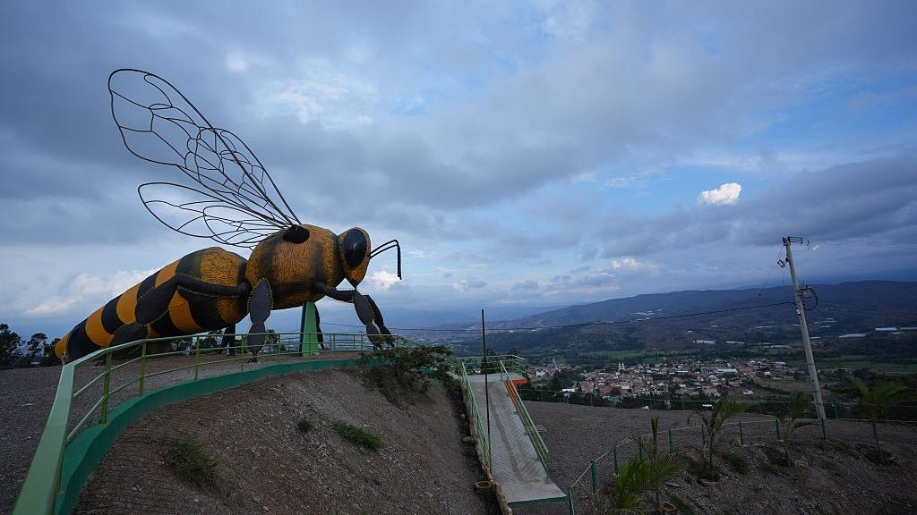 Una colosal escultura de una abeja en una ciudad colombiana está causando revuelo en todo el mundo. Con 46 pies de altura y 56 pies de largo, el monumento de hormigón armado recientemente inaugurado al público en el Parque El Apiario, ubicado en la localidad de Sutamarchán, en la región de Boyacá, actualmente está siendo evaluado por Guinness World Records para ser reconocido como la estructura de abejas más grande del mundo.