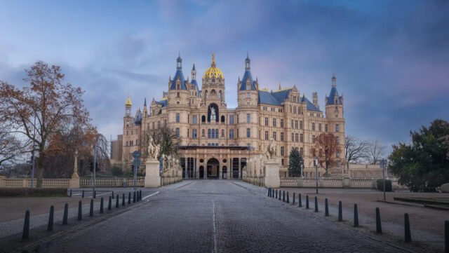 Un magnífico castillo alemán que no siempre recibe el reconocimiento que merece es el castillo de Schwerin, hogar ancestral de los duques de Mecklemburgo. Este magnífico castillo flota en una isla en medio de la ciudad de Schwerin, rodeado por un lago resplandeciente, y es considerado una de las obras de historicismo romántico más importantes de Europa, al igual que monumentos como el Castillo de Chambord en el río Loira en Francia.