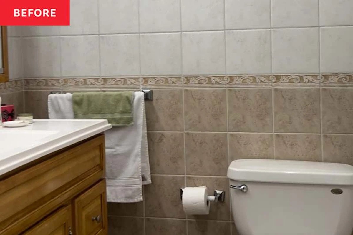 Renueva un beige apagado baño No es una tarea fácil. Lo sé por experiencia: mi familia y yo nos mudamos a un apartamento de cuatro dormitorios y tres baños proporcionado por el empleador de mi marido en El Cairo, Egipto. Si bien no pagar el alquiler tenía sus beneficios, quedarse atrapado con varios baños anticuados no era lo ideal.