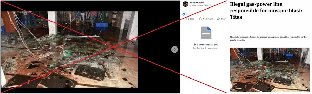 Las rivalidades entre los principales partidos políticos de Bangladesh se han agudizado en el período previo a las elecciones programadas para febrero de 2026. Después de que los partidarios de los dos principales partidos de Bangladesh se pelearan en una mezquita en octubre, circularon en línea fotografías antiguas con la falsa afirmación de que mostraban las consecuencias de la pelea. En realidad, una de las fotografías fue tomada en Afganistán, mientras que las otras muestran las secuelas de una explosión de gas en una mezquita de Bangladesh en 2020.