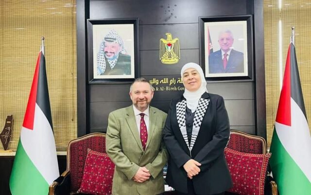 El principal asesor del Ministerio de Defensa británico para Oriente Medio y el Norte de África, el general Edward Ahlgren, se reunió con la gobernadora de Ramallah, Laila Ghannam, una alta funcionaria de la Autoridad Palestina.