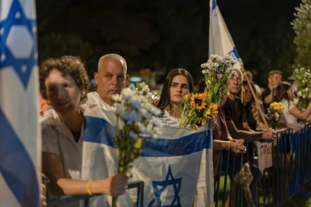 La gente presenta sus respetos frente al Instituto Forense Abu Kabir mientras los cuerpos de cuatro rehenes, Daniel Peretz, Yossi Sharabi, Guy Iluz y el ciudadano nepalés Bipin Joshi, llegan desde Gaza, como parte de un alto el fuego entre Israel y Hamás. Ilia Efimovitch/dpa