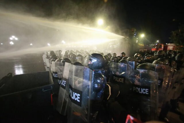 Home International La policía de Georgia usa cañones de agua para repeler a los...