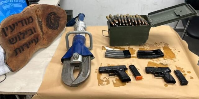 Dos pistolas, un artefacto explosivo, municiones y cargadores fueron incautados en un recinto escolar en la ciudad beduina de Lakiya, en el sur de Israel, durante una represión planificada, confirmó la policía israelí el jueves.