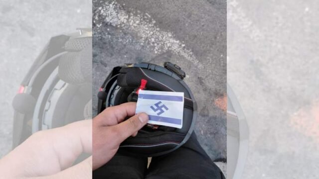 Durante el incidente, los activistas comenzaron a ondear banderas israelíes con un esvástica símbolo pintado en él frente a la policía.