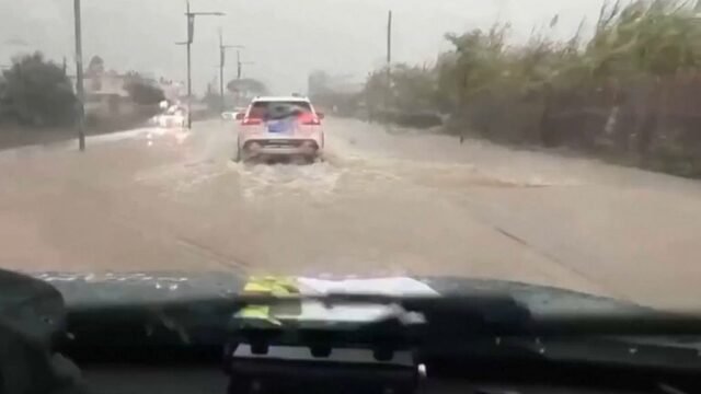 Los videos compartidos en línea mostraban vehículos arrastrados por torrentes de agua marrón mientras los servicios de emergencia rescataban a conductores atrapados en autos sumergidos.