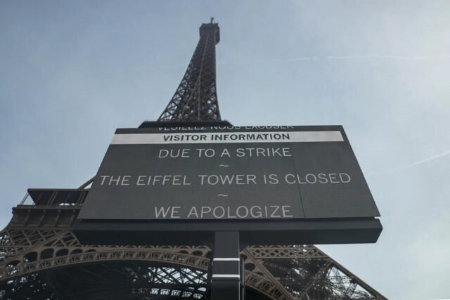 La Torre Eiffel fue cerrada el jueves debido a una huelga nacional en Francia por los principales sindicatos del país.