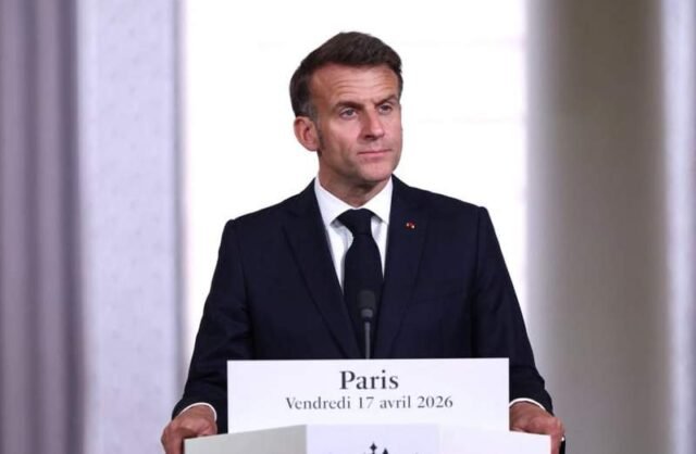 El presidente francés Emmanuel Macron asiste a una conferencia de prensa después de la cumbre virtual multinacional en el palacio presidencial del Elíseo en París, Francia, el 17 de abril de 2026. (Crédito: Tom Nicholson/Pool vía REUTERS)