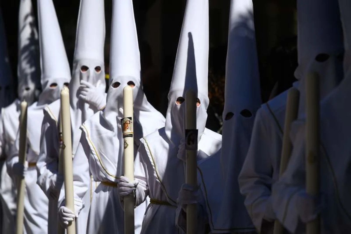 Los miembros de piadosas hermandades visten túnicas y se cubren con capuchas puntiagudas. Sus rostros suelen estar completamente cubiertos, a excepción de dos rendijas a modo de ojos, lo que los hace parecer extraños, misteriosos y casi aterradores, pero también es una mirada que atrae a muchos.