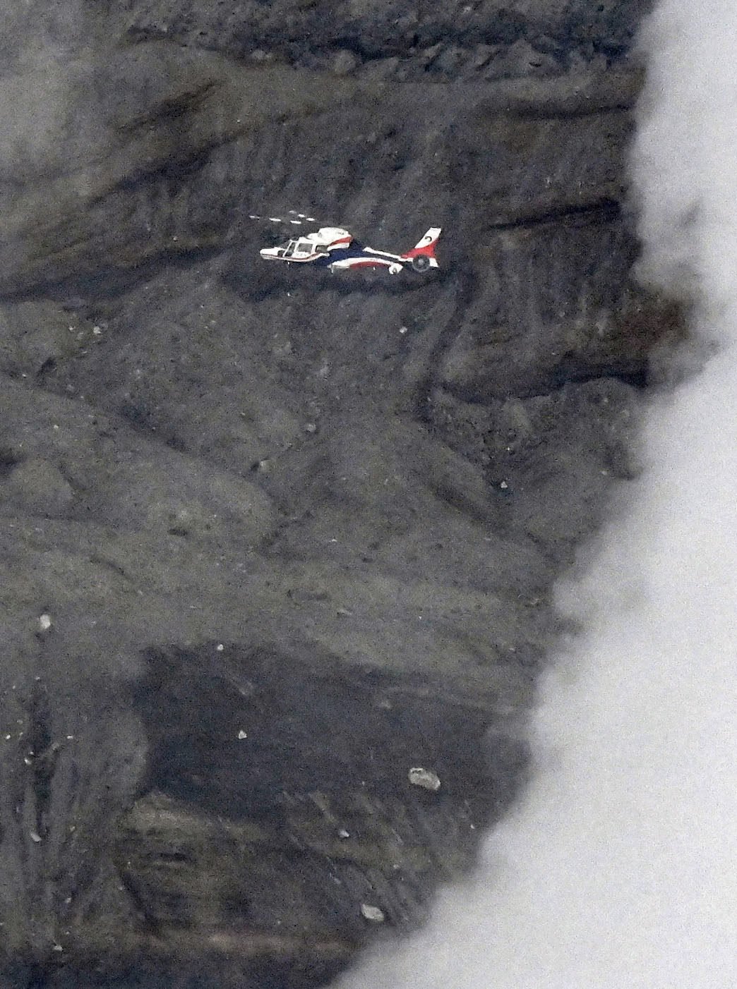 La policía local dijo que los restos, probablemente los del helicóptero desaparecido, fueron avistados el martes dentro del cráter Nakadake, uno de los cinco picos del Monte Aso. Sin embargo, los fuertes vientos y los gases volcánicos obstaculizaron la operación de rescate, dijeron los bomberos.