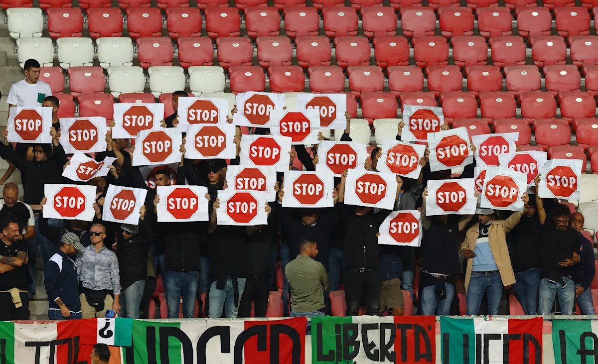 Los manifestantes parecían comportarse pacíficamente en el otro lado de la calle del complejo de fútbol, ​​sosteniendo en el aire una pancarta que se leía en italiana: “Armotons sionismo con resistencia”. Un líder de protesta atrapó un micrófono y gritó: “¿Cómo puedes permitir siempre que Israel, un estado sionista y criminal, juegue partidos de fútbol?”
