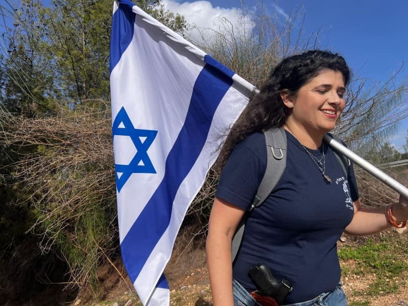 Haskel comenzó su caminata el domingo, caminando por carreteras con banderas israelíes en un intento de crear conciencia.
