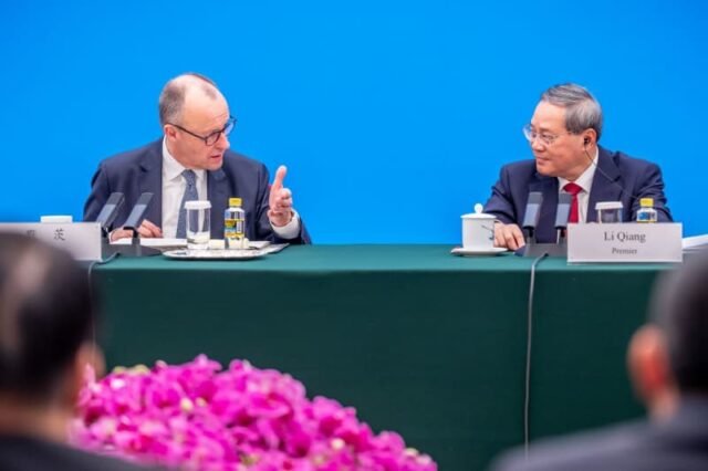 “Concedo gran importancia a mantener y profundizar estas relaciones tanto como sea posible”, dijo Merz al comienzo de su visita inaugural de dos días a China como canciller, hablando junto al primer ministro chino Li Qiang en una reunión en Beijing.