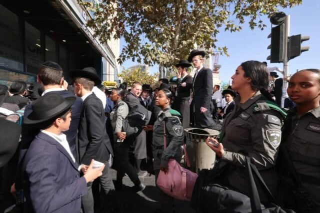 Una protesta ultraortodoxa planificada provoca disturbios masivos en la estación de tren de Jerusalén, el 30 de octubre de 2025. (CRÉDITO: SECCIÓN 27A DE LA LEY DE DERECHOS DE AUTOR)