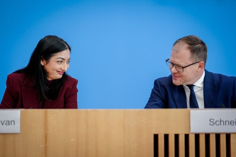 Reem Alabali-Radovan, Ministra alemana de Cooperación Económica y Desarrollo, y Carsten Schneider, Ministro de Medio Ambiente, Protección del Clima, Conservación de la Naturaleza y Seguridad Nuclear, celebran una conferencia de prensa antes de la Conferencia Mundial sobre el Clima COP30. Kay Nietfeld/dpa