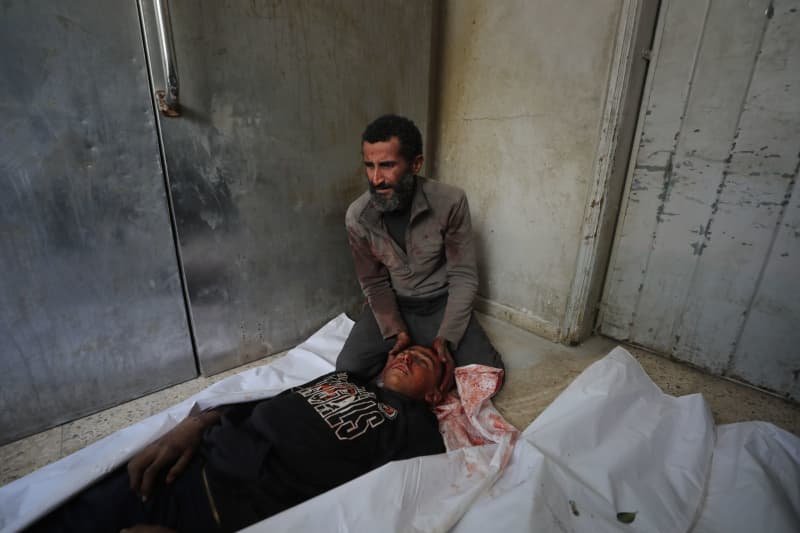 Un familiar de un niño palestino asesinado por fuego del ejército israelí lo abraza durante la ceremonia fúnebre celebrada en el Hospital Al-Shifa. Omar Ashtawy/Images APA vía ZUMA Press Wire/dpa