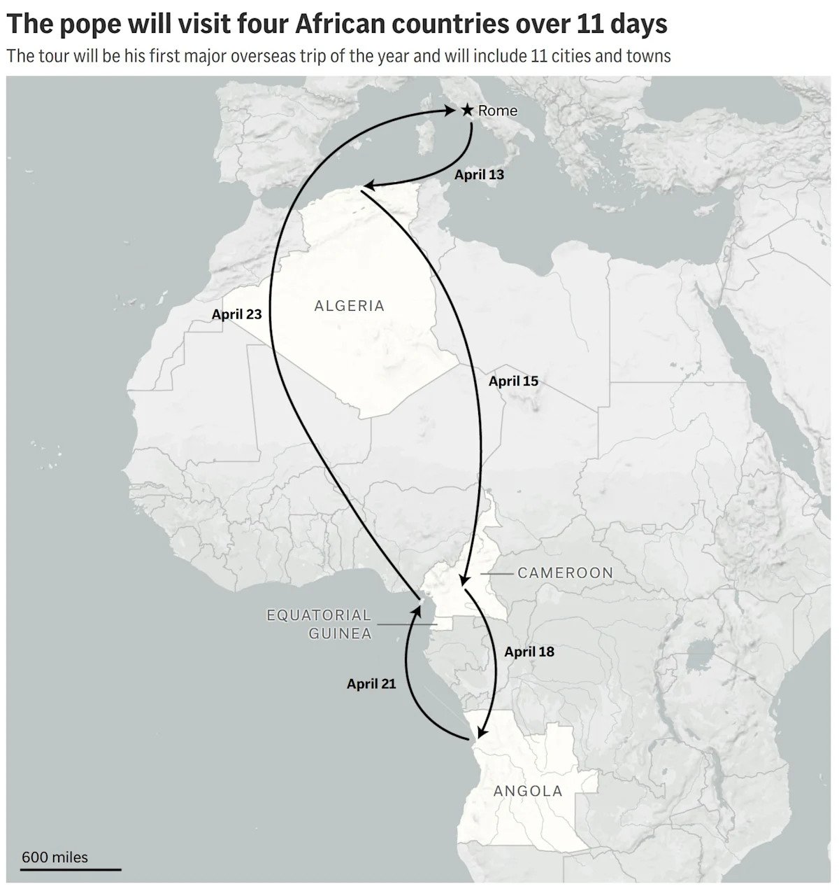 País por país, una mirada al viaje del Papa León XIV a África