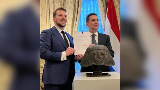 “Es profundamente lamentable que este objeto haya sido retirado debido a un saqueo”, dijo en la ceremonia Gouke Moes, funcionario holandés a cargo de educación, cultura y ciencia. “Esta cabeza de piedra no tiene cabida aquí, y mucho menos en el mercado del arte. Tiene su cabida en Egipto”.