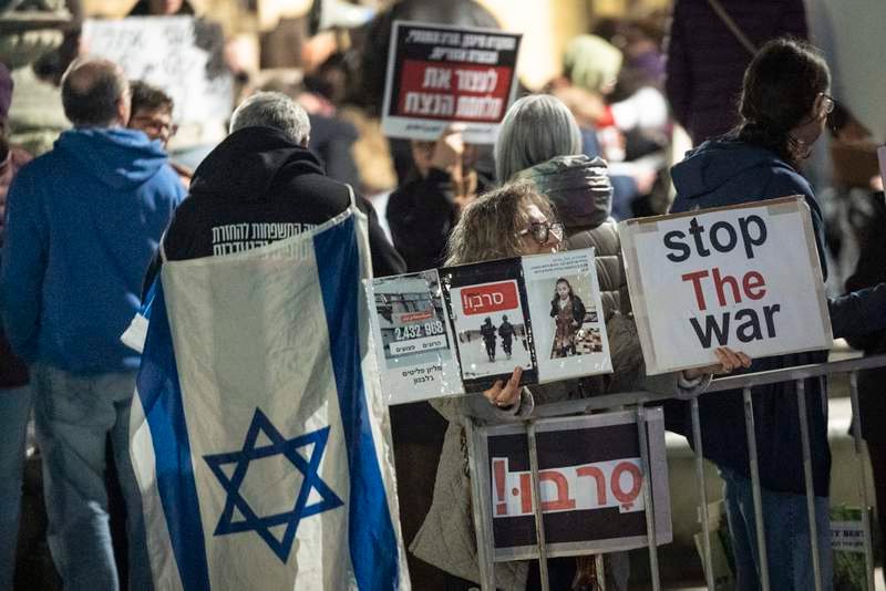 El sábado por la noche se llevaron a cabo protestas contra la guerra en todo Israel, y los manifestantes se reunieron en Tel Aviv, Haifa, Jerusalén y Kfar Saba, a pesar de las estrictas restricciones impuestas en tiempos de guerra a las reuniones públicas.