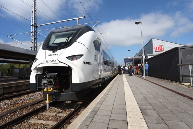 Un tren “Mireo” de Siemens Mobility se encuentra en la estación de Buchloe después de un recorrido de prueba. La empresa alemana Siemens Mobility recibió de la compañía ferroviaria nacional suiza CFF un pedido de 116 trenes de dos pisos. Karl-Josef Hildenbrand/dpa