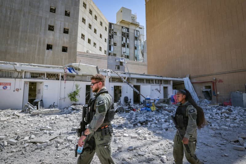 La escena donde un misil balístico disparado desde Irán impactó y causó daños en el Centro Médico Soroka en Beersheba, el 19 de junio de 2025. (crédito: Yair Tirosh/Flash90)