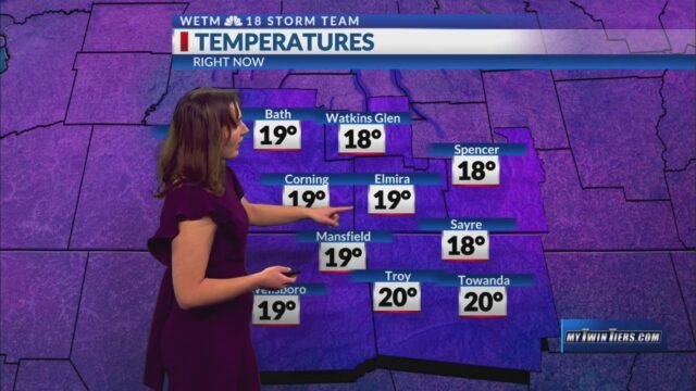 ELMIRA, Nueva York (WETM)- Un frente frío ártico cruzó ambos niveles esta tarde, provocando que persistieran temperaturas muy gélidas durante la tarde y la noche. A medida que la masa de aire frío se estabilice esta noche, las temperaturas bajarán casi 6 grados, y las temperaturas se sentirán cercanas al punto de congelación.