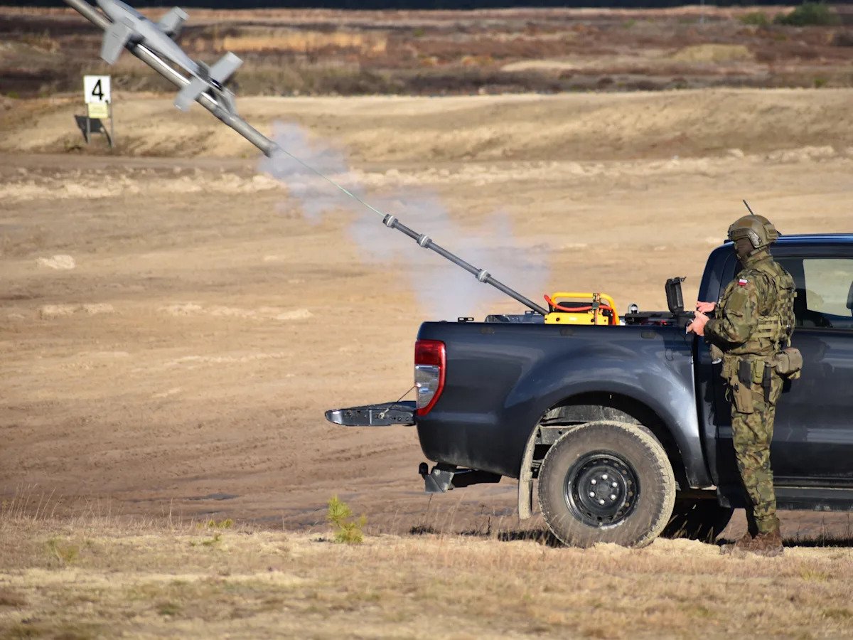 Durante la manifestación, los soldados polacos lanzaron el Surveyor desde la caja de una camioneta, y el dron emitió un fuerte ruido de “pop” mientras despegaba en busca de su objetivo. A diferencia de Ucrania, este interceptor no estaba armado con carga explosiva.