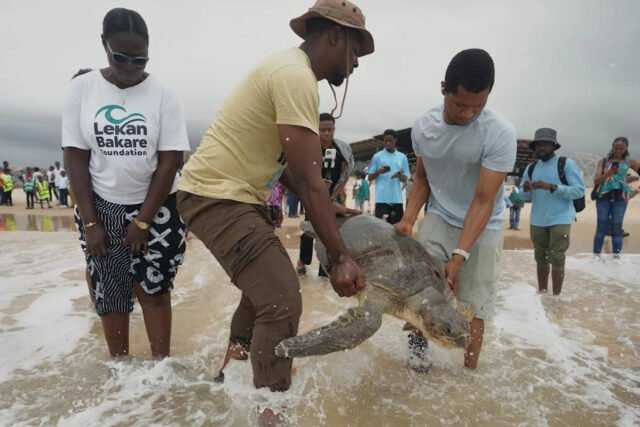 Las maltratadas tortugas marinas rescatadas por Mogbo y su equipo habían sido atendidas en un santuario de vida silvestre en peligro de extinción en Lagos antes de ser liberadas en el océano.