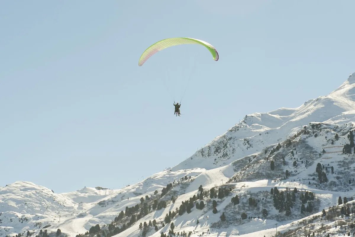 Las imágenes del incidente muestran al parapente flotando sobre los esquiadores y practicantes de snowboard antes de aterrizar de manera segura sin causar lesiones ni colisiones.