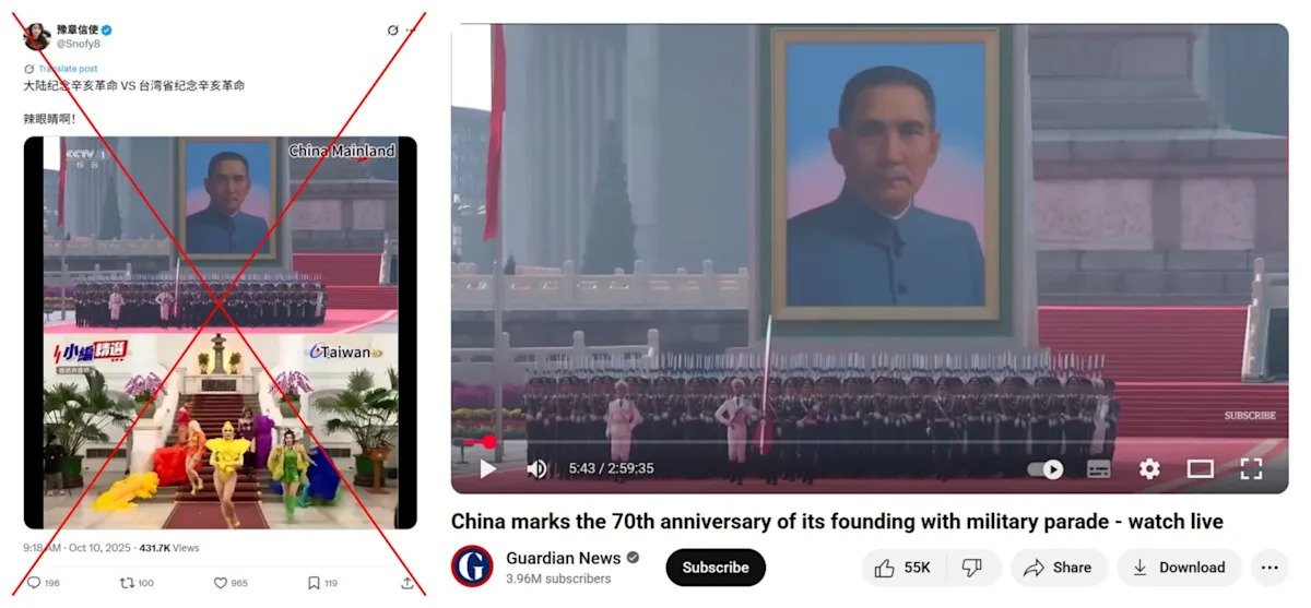 Vídeos no relacionados vinculados falsamente a la conmemoración de la Revolución Xinhai en China y Taiwán