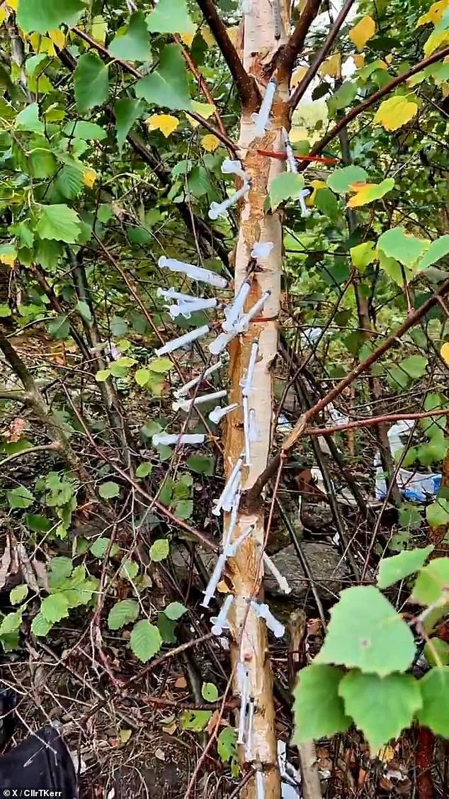 Home Noticias A sordid drug denant with a tree covered with dirty heroine syringes...