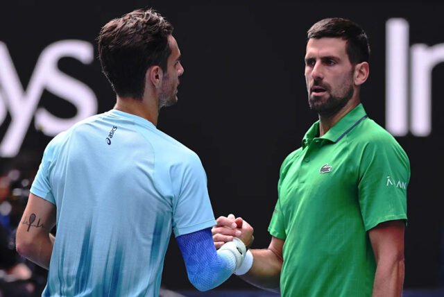 Fue una escena brutal para el italiano de 23 años, que tenía un récord de 1-9 contra Djokovic antes del partido.