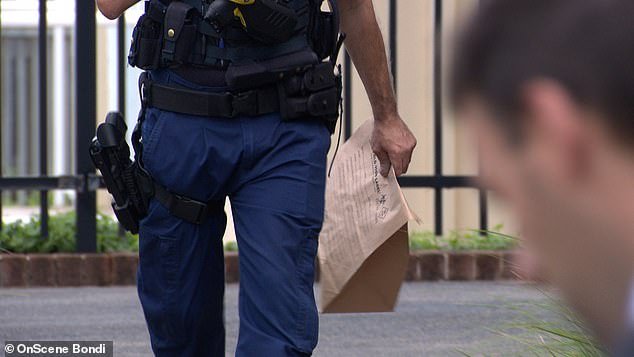 La policía se apresuró a acudir al Rose Bay Second College, en el este de la ciudad, el jueves poco después de la 1:45 p.m. tras los informes de un adolescente con un arma (en la foto, los agentes recogen pruebas)