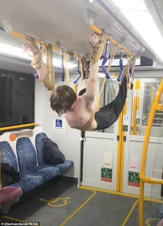 El joven de 19 años, conocido como “Joshua Cherub” en sus cuentas de redes sociales, fue acusado después de que viajeros sorprendidos lo encontraran con las manos y los pies atados con cinta adhesiva, colgado sin camisa de las barandillas de un vagón de tren de Sydney el 28 de septiembre.