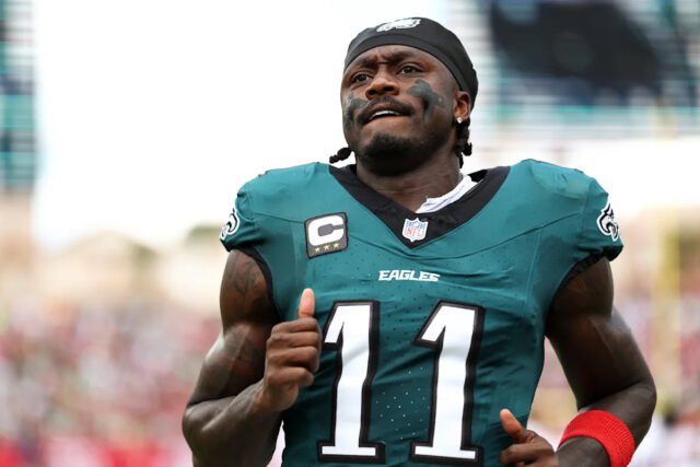 El amplio receptor de las Águilas de Filadelfia, AJ Brown, está frustrado.